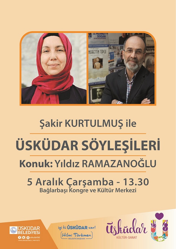 Üsküdar Söyleşilerinin  konuğu  Yıldız Ramazanoğlu. Şakir Kurtulmuş’un hazırlayıp yönettiği Üsküdar Söyleşileri bu ay 05 Aralık 2018 Çarşamba  günü  gerçekleşecek. Bağlarbaşı Kültür Merkezi’nde Üsküdar Belediyesi Kültür Müdürlüğü’nün katkıları ile gerçekleşecek söyleşilere  Üsküdar’da yaşayan, Üsküdar’ı mekan edinen, uzun yıllar burada yaşayan sanat ve edebiyatçılar, tarihi şahsiyetler  konuk ediliyor.